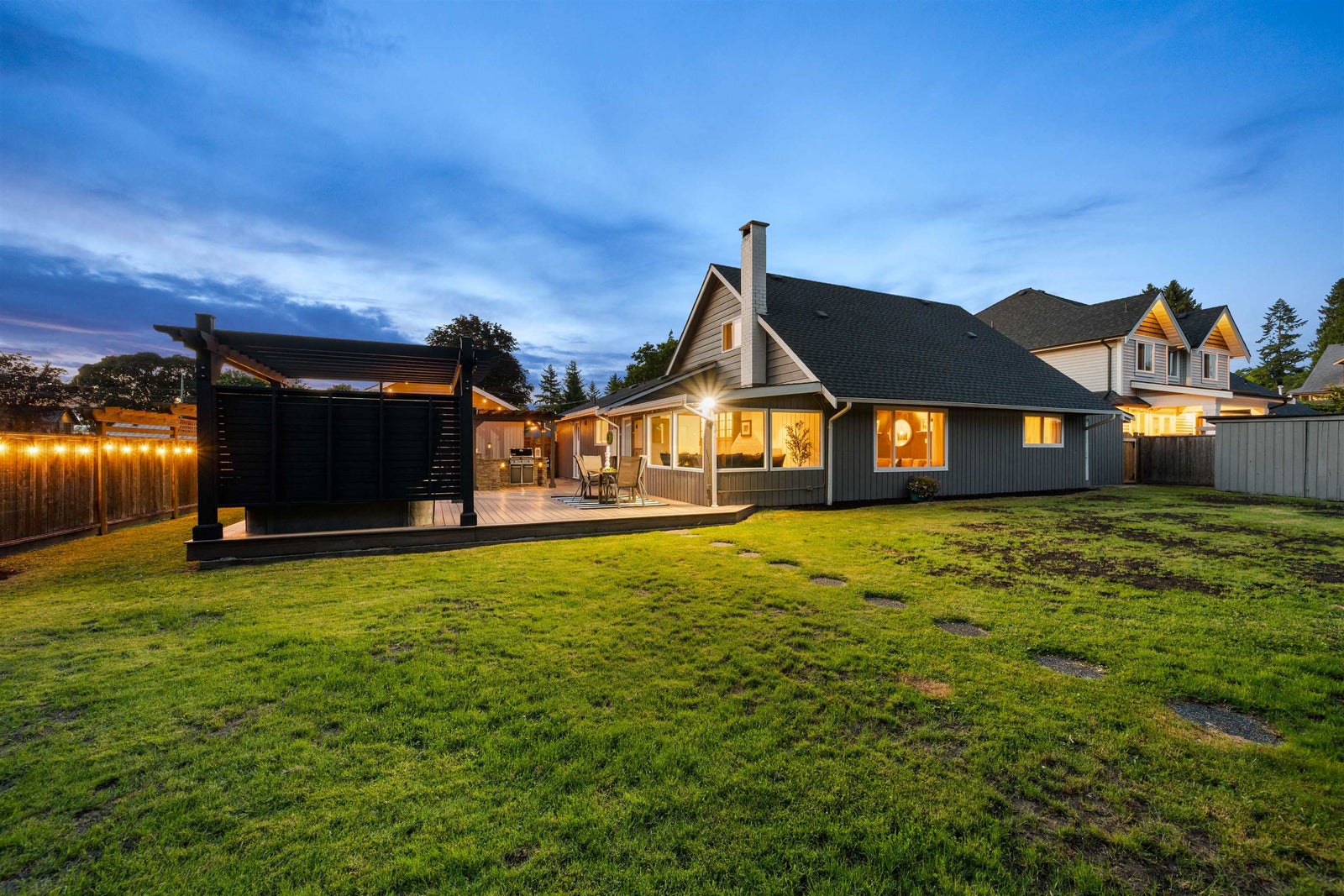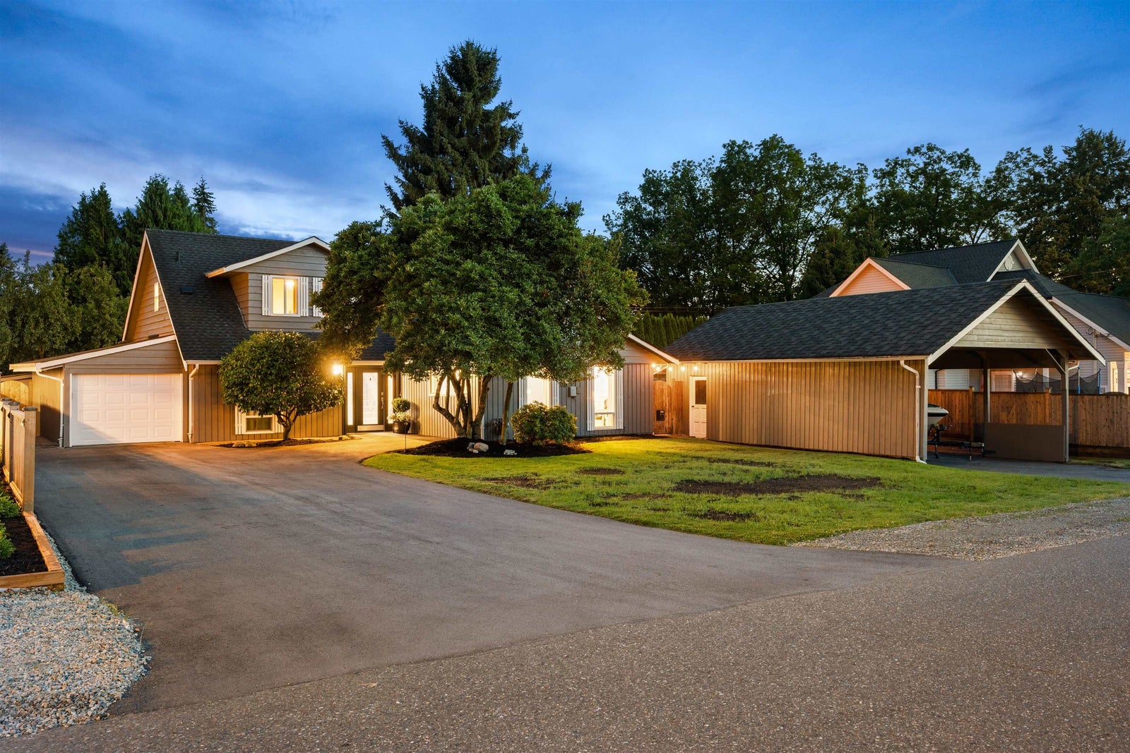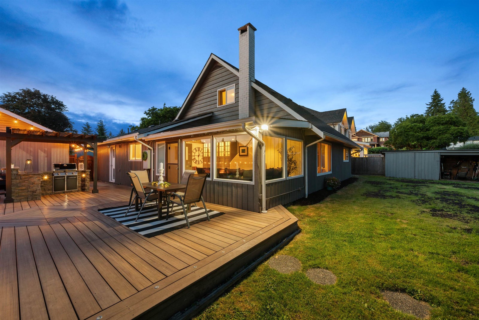 Fort Langley gem! Thoughtfully updated in 2022 and meticulously cared for, this 4 bed, 2 bath two-storey sits on a quiet street on a 1/3-acre lot, steps to farmland and a short walk to Fort Langley Fine Arts School. Enjoy a private fenced yard with mature landscaping, fruit trees and grapevines. Entertain on the 760 sqft composite deck with pergola, granite outdoor kitchen with plumbed gas BBQ, storage and built-in gas fire pit with seating. Updates include vinyl windows, new roof, hot water tank, quartz counters, gas washer/dryer, flex room and a bright sunroom with heated floors and built-in bench. Parking for 12 plus an oversized 32’ x 21’ RV carport. Bonus: a charming 1 bedroom garden cottage with new paint, flooring and windows—perfect for guests, extended family or extra flexibility!