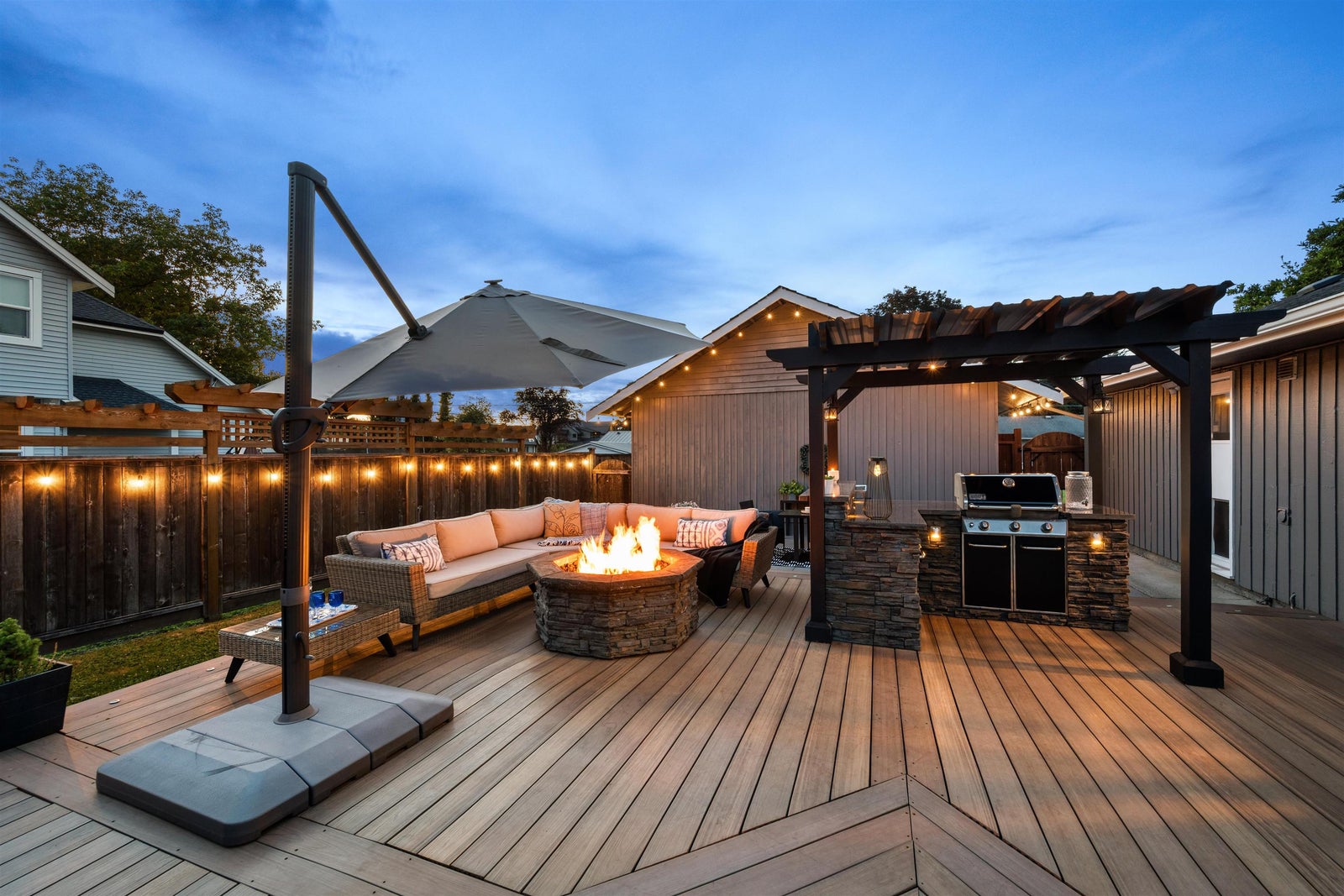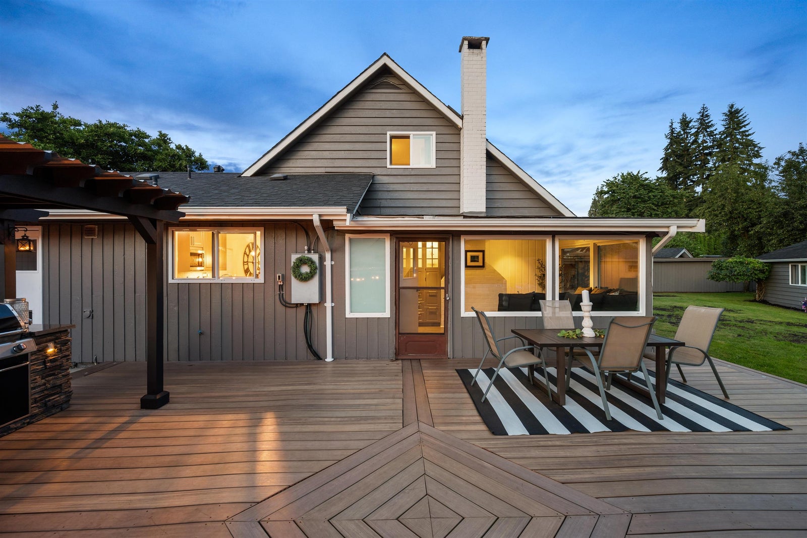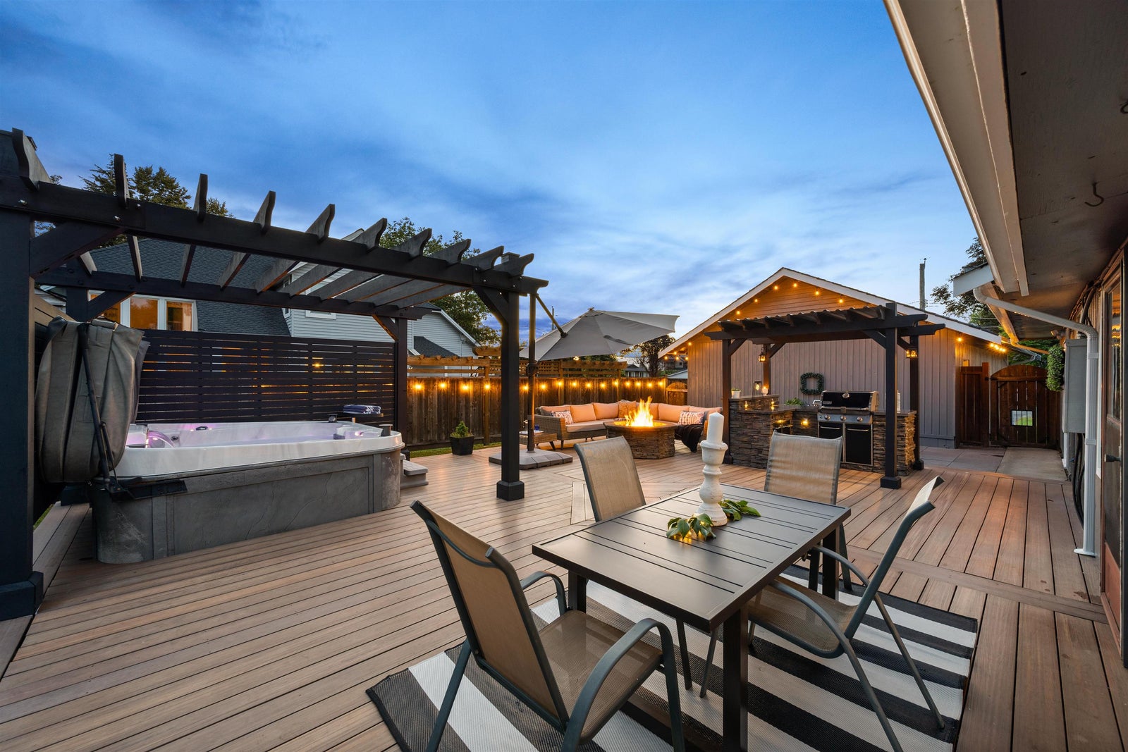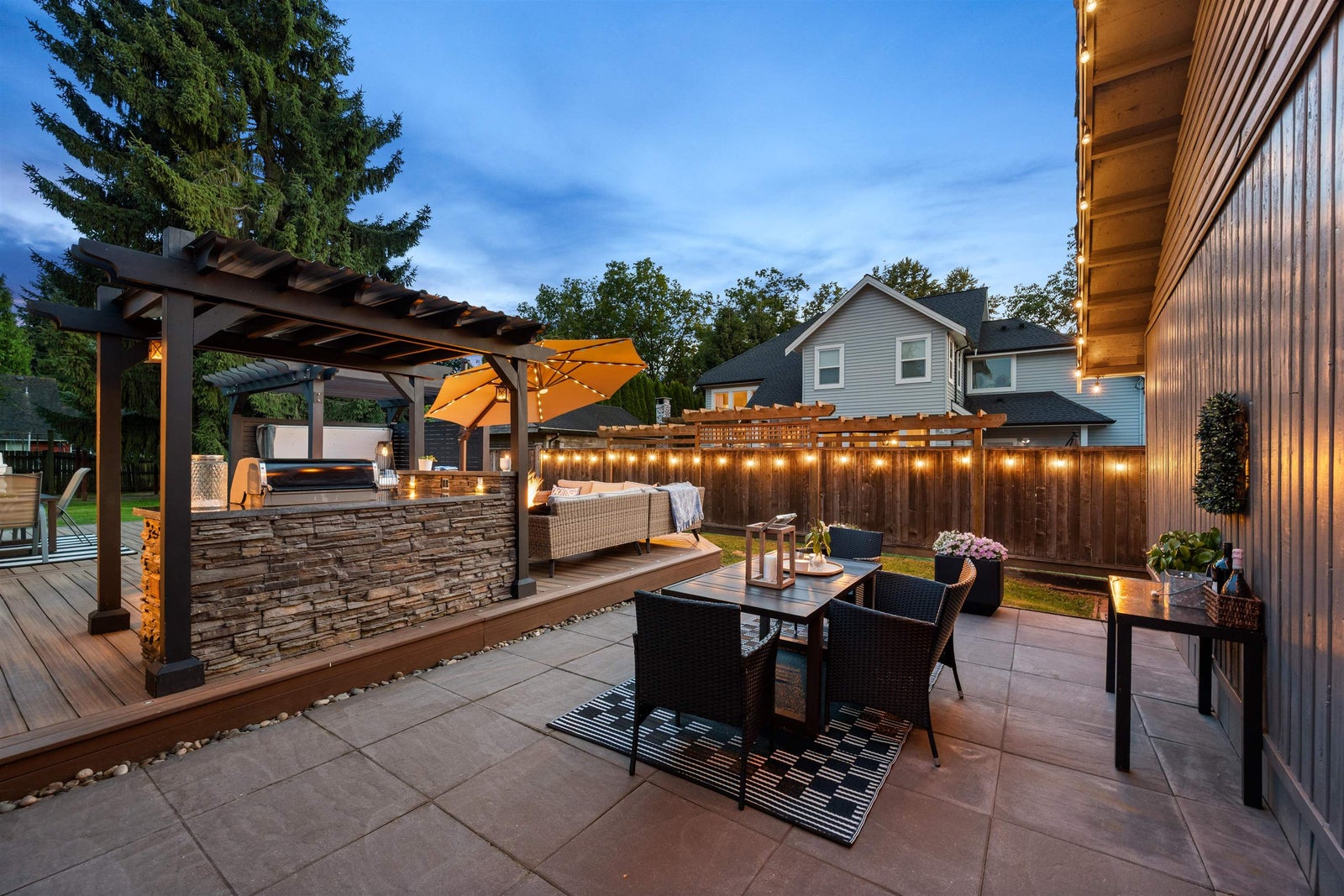 Fort Langley gem! Thoughtfully updated in 2022 and meticulously cared for, this 4 bed, 2 bath two-storey sits on a quiet street on a 1/3-acre lot, steps to farmland and a short walk to Fort Langley Fine Arts School. Enjoy a private fenced yard with mature landscaping, fruit trees and grapevines. Entertain on the 760 sqft composite deck with pergola, granite outdoor kitchen with plumbed gas BBQ, storage and built-in gas fire pit with seating. Updates include vinyl windows, new roof, hot water tank, quartz counters, gas washer/dryer, flex room and a bright sunroom with heated floors and built-in bench. Parking for 12 plus an oversized 32’ x 21’ RV carport. Bonus: a charming 1 bedroom garden cottage with new paint, flooring and windows—perfect for guests, extended family or extra flexibility!