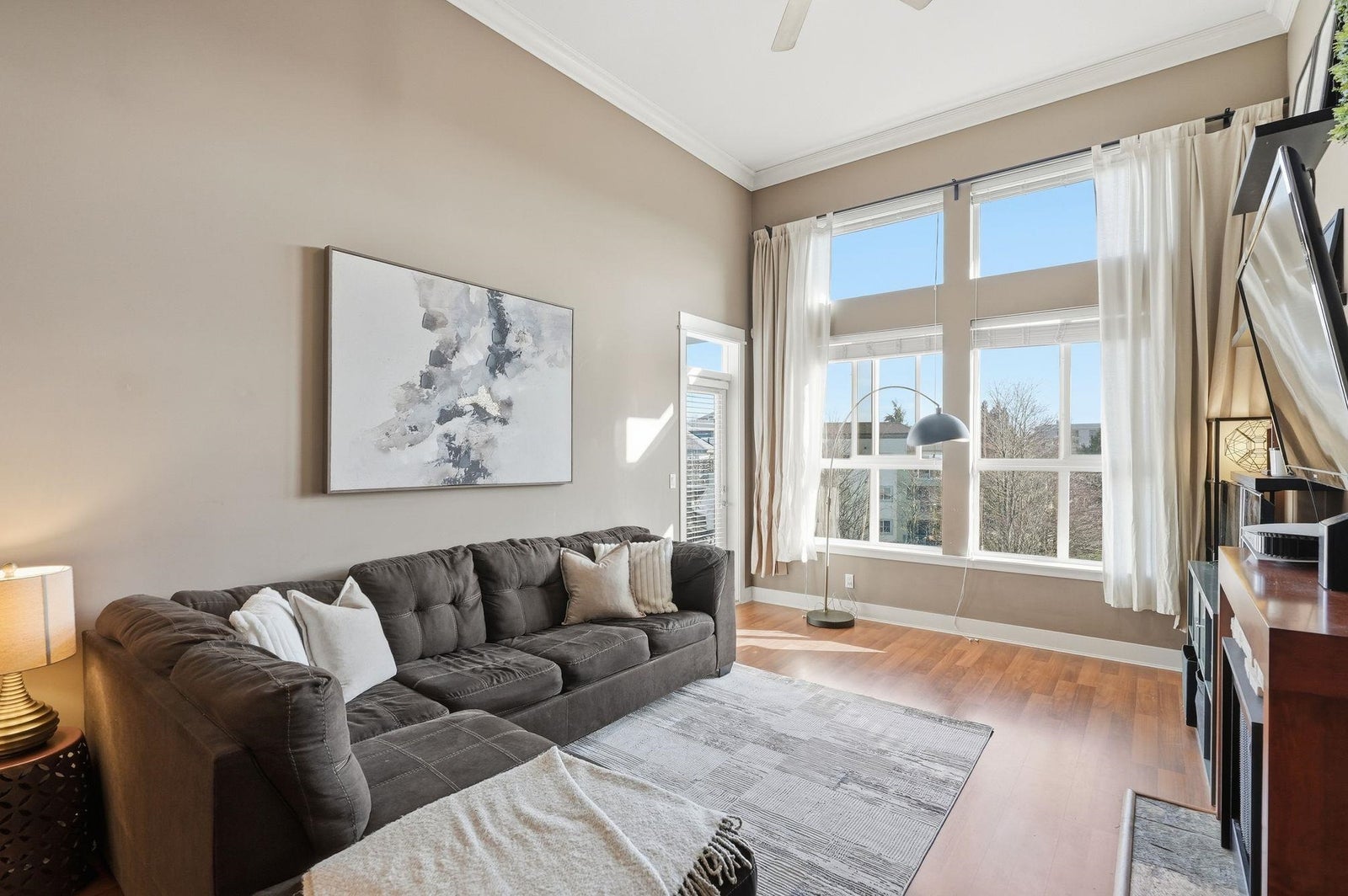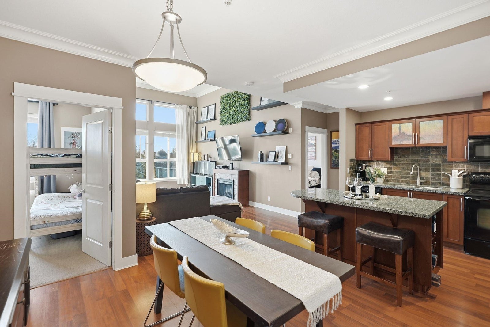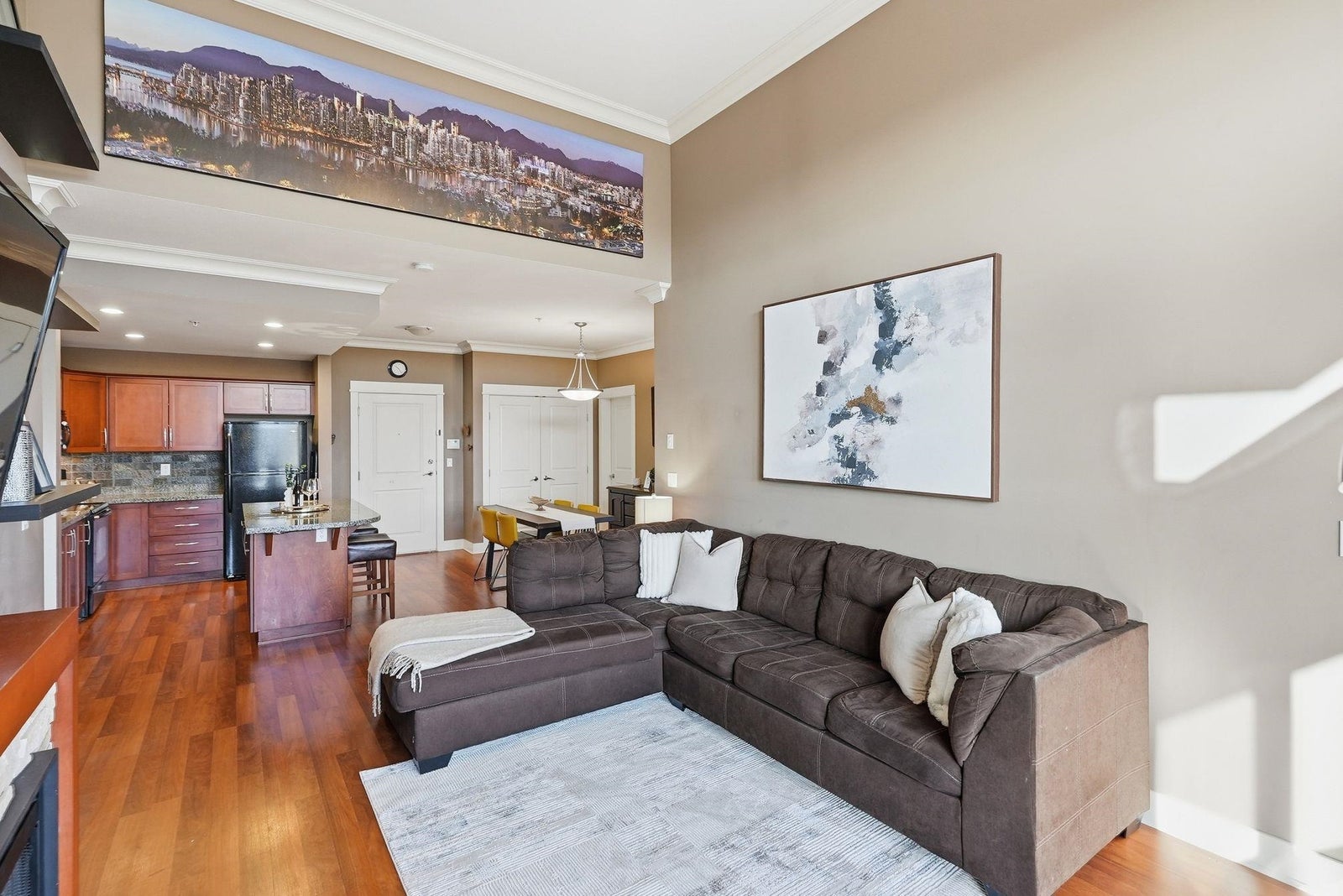 Here is your chance to own this rarely available 2 bed 2 bath home located on the top floor of The Sonnet. Inside you are welcomed by an open plan with large bedrooms nicely separated by the living, dining & kitchen space. Classic wood cabinetry, granite counters, impressive crown mouldings & soaring 14' high ceilings with floor to ceiling windows in the main living area offer beautiful mountain views. Start your day off with a workout in the onsite gym and wind down at the end of the day in the beautiful library. This centrally located home is right across the street from Linwood Park and is close to schools, shopping, restaurants and all the other conveniences Langley City has to offer. Call to book your showing today!