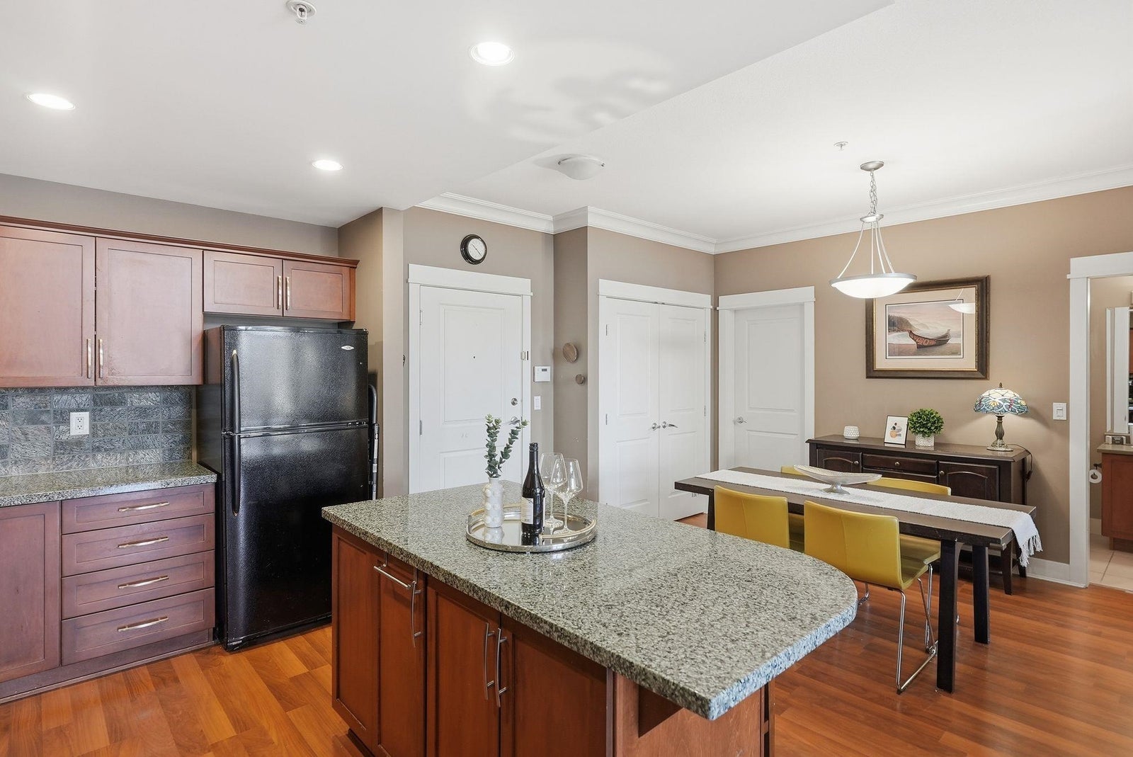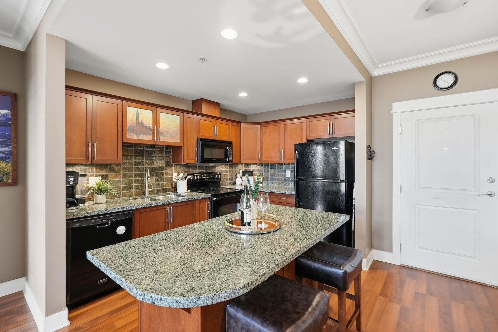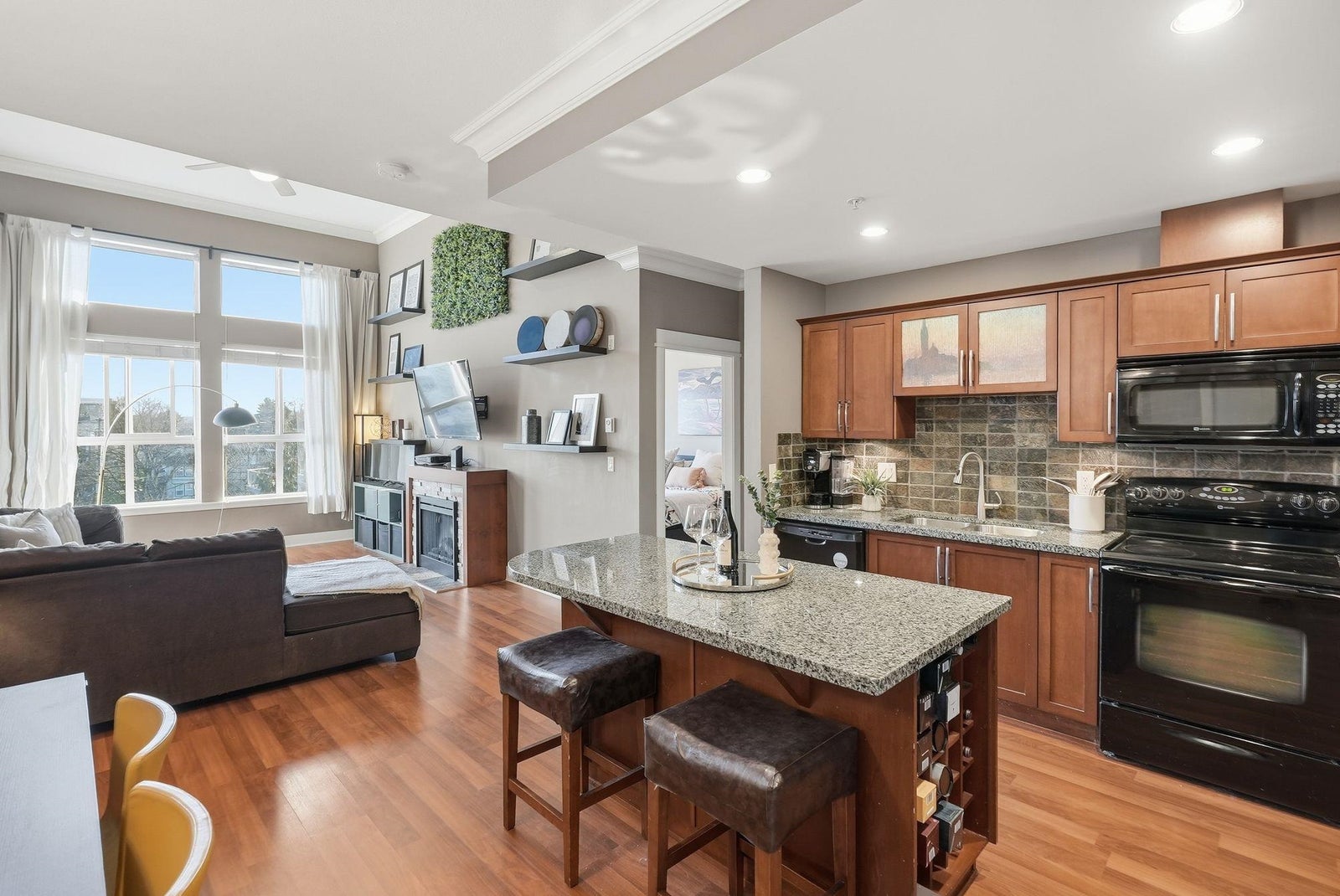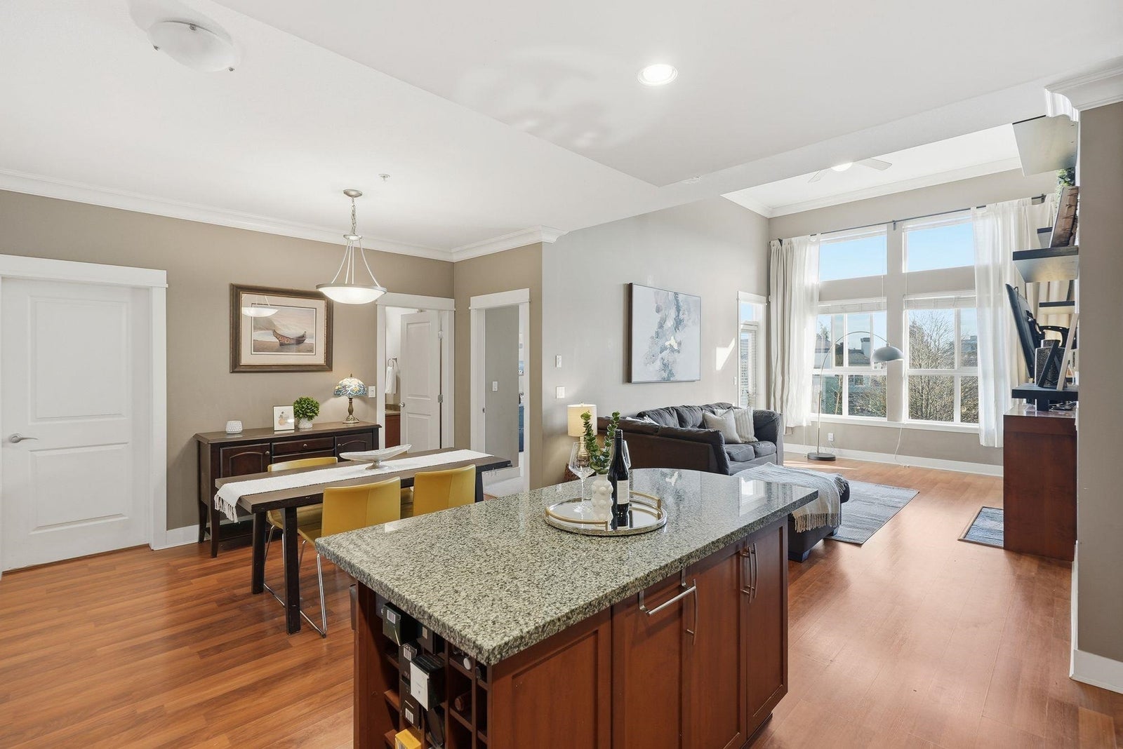 Here is your chance to own this rarely available 2 bed 2 bath home located on the top floor of The Sonnet. Inside you are welcomed by an open plan with large bedrooms nicely separated by the living, dining & kitchen space. Classic wood cabinetry, granite counters, impressive crown mouldings & soaring 14' high ceilings with floor to ceiling windows in the main living area offer beautiful mountain views. Start your day off with a workout in the onsite gym and wind down at the end of the day in the beautiful library. This centrally located home is right across the street from Linwood Park and is close to schools, shopping, restaurants and all the other conveniences Langley City has to offer. Call to book your showing today!